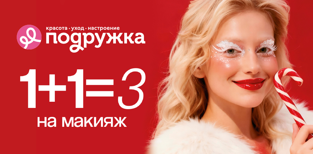 *Акция действует только для владельцев дисконтной карты «Подружка». Третий товар по наименьшей стоимости — бесплатно. Другие скидки не действуют. Есть бренды-исключения (PINK UP, CATRICE, essence). Подробности уточняй на www.podrygka.ru или у продавцов-консультантов.